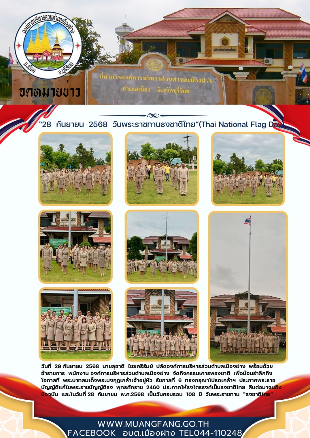 วันที่ 29 กันยายน 2568 องค์การบริหารส่วนตำบลเมืองฝาง จัดกิจกรรม"วันพระราชทานธงชาติไทย " (Thai National Flag Day) ประจำปี 2568 เพ�...