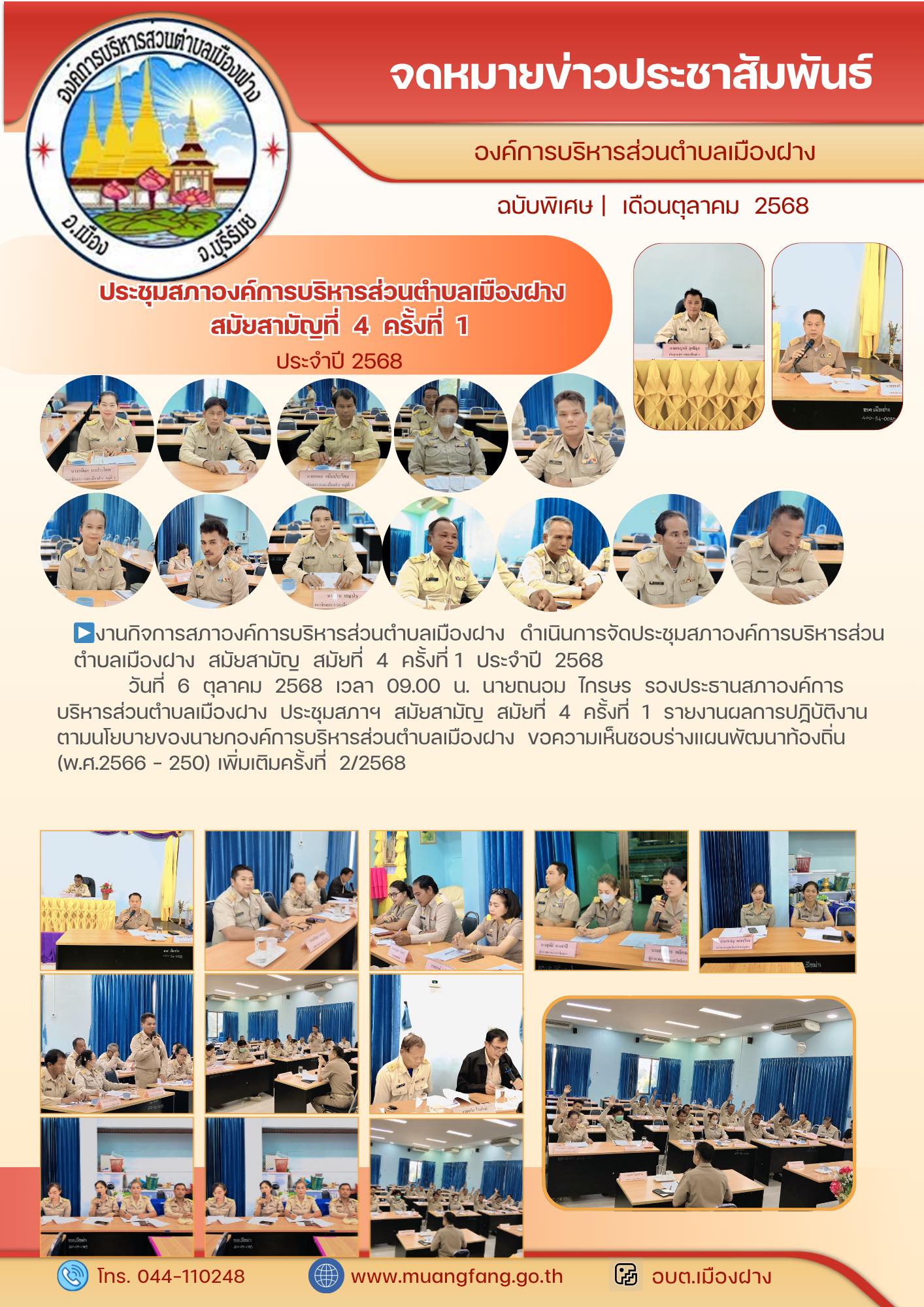 วันที่ 6 ตุลาคม 2568 ประชุมสภาฯ สมัยสามัญ สมัยที่ 4 ครั้งที่ 1 รายงานผลการปฏิบัติงานตามนโยบายของนายกองค์การบ�...