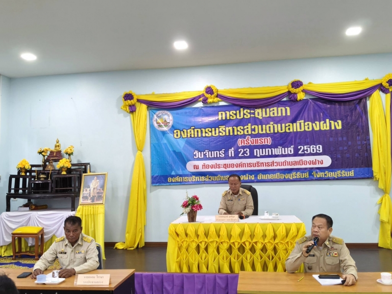 วันพุธที่ 4 มีนาคม 2569 ประชุมสภาองค์การบริหารส่วนตำบลเมืองฝาง สมัยสามัญสมัยที่ 1 ครั้งที่ 1 ประจำปี 2569 ณ ห้องประชุมสภาองค์การบริหารส่วนตำบลเมืองฝาง อำเภอเมืองบุรีรัมย์ จังหวัดบุรีรัมย์
