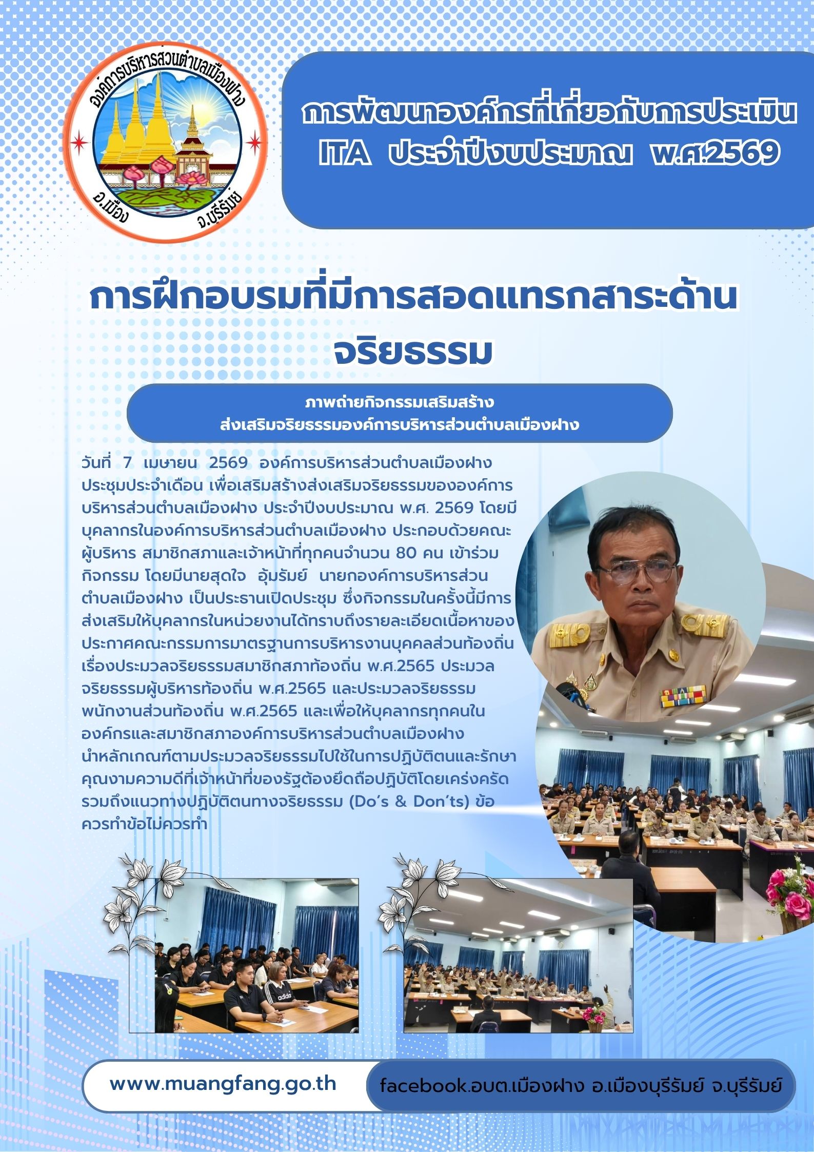วันที่ 7 เมษายน 2569 กิจกรรมเสริมสร้าง/ส่งเสริมจริยธรรมขององค์การบริหารส่วนตำบลเมืองฝาง