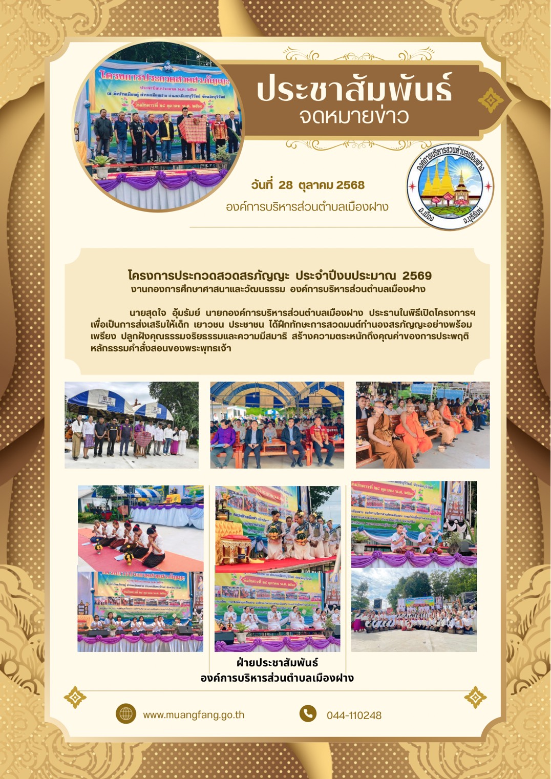 วันที่ 28 ตุลาคม 2568 โครงการประกวดสวดสรภัญญะ ประจำปีงบประมาณ 2569