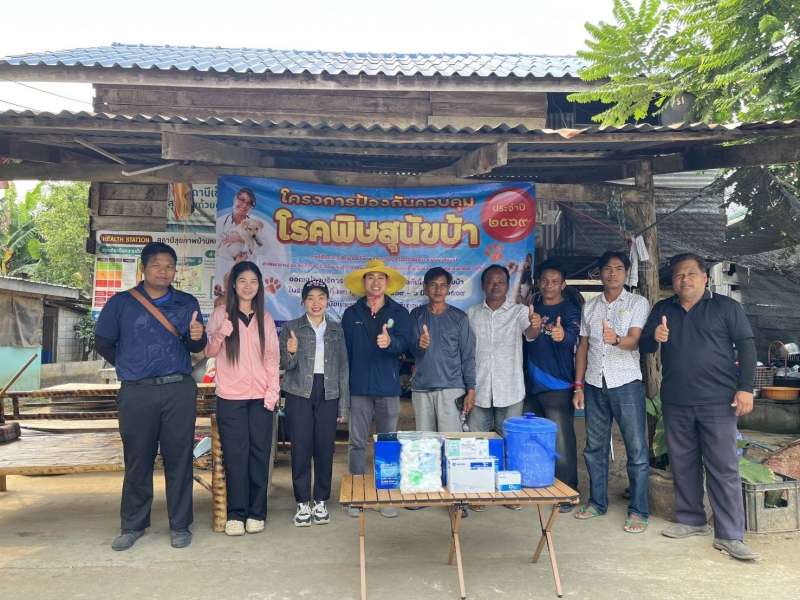 วันที่ 25 กุมภาพันธ์ 2569 ดำเนินการฉีดวัคซีนป้องกันโรคพิษสุนัขบ้า บ้านเมืองดู่ หมู่ที่ 8 และบ้านศรีสมนึก หมู่ที่ 16 ภายใต้โครงการสัตว์ปลอดโรคคนปลอดภัย จากโรคพิษสุนัขบ้า ประจำปีงบประมาณ 2569